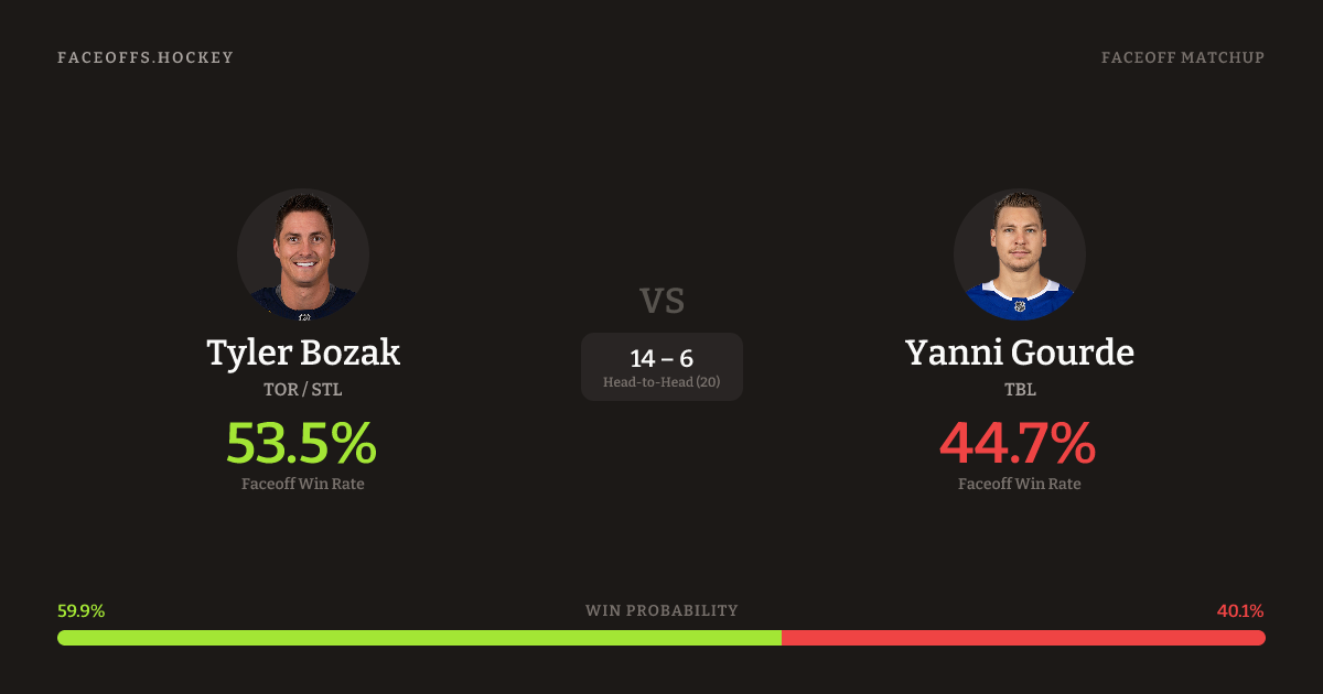 Tyler Bozak vs Yanni Gourde — Faceoff Head-to-Head