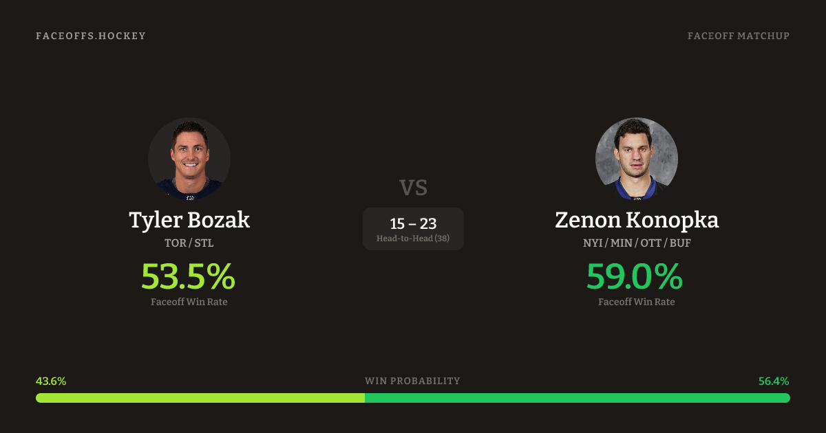 Tyler Bozak vs Zenon Konopka — Faceoff Head-to-Head
