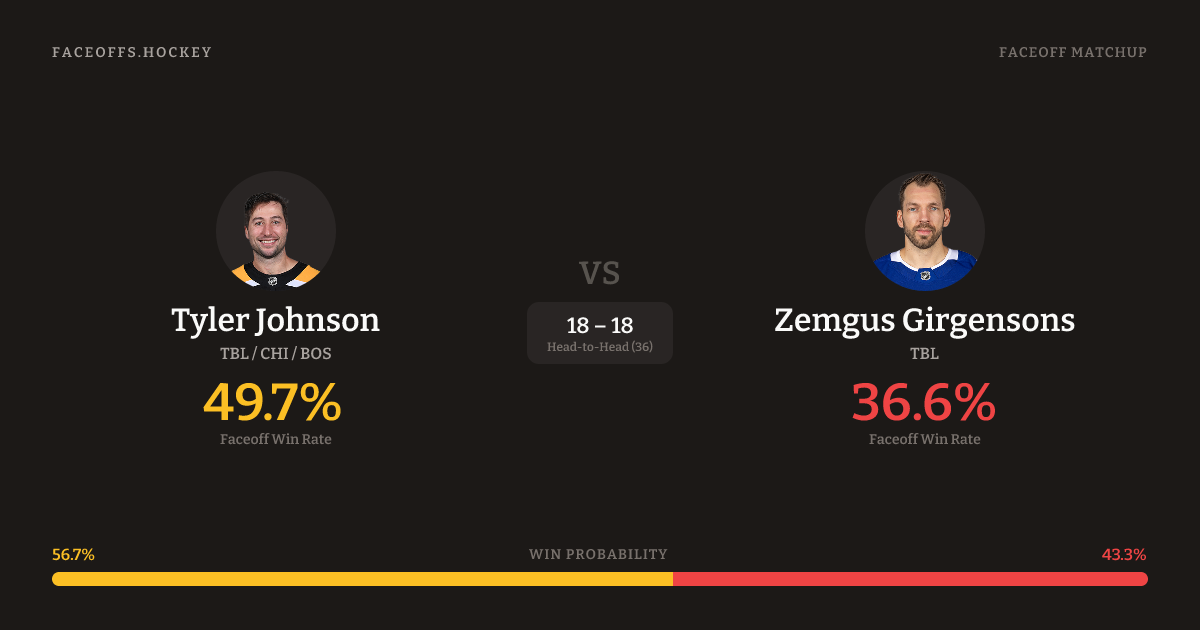 Tyler Johnson vs Zemgus Girgensons — Faceoff Head-to-Head