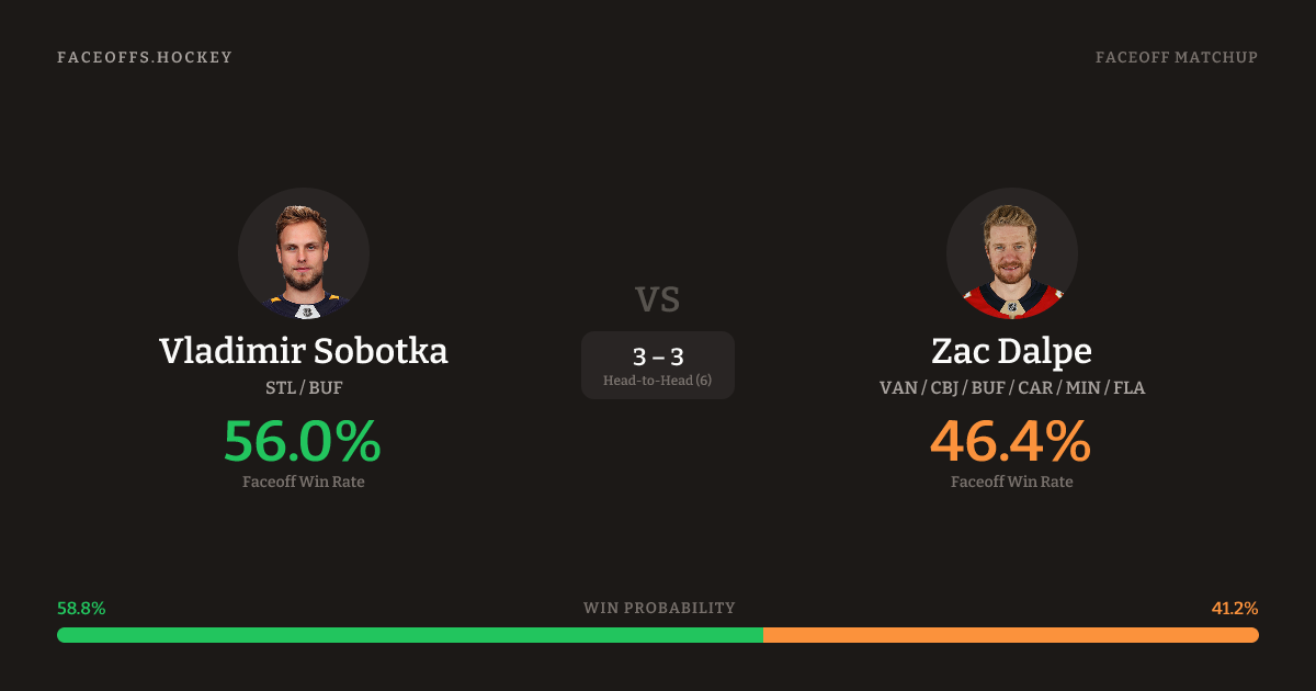 Vladimir Sobotka vs Zac Dalpe — Faceoff Head-to-Head
